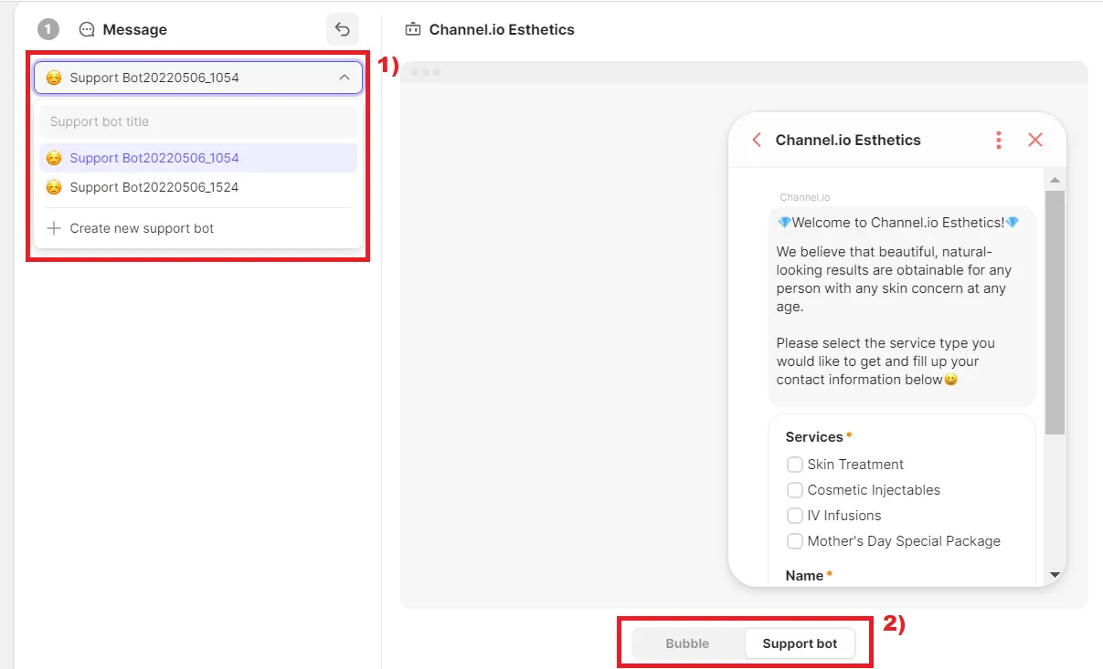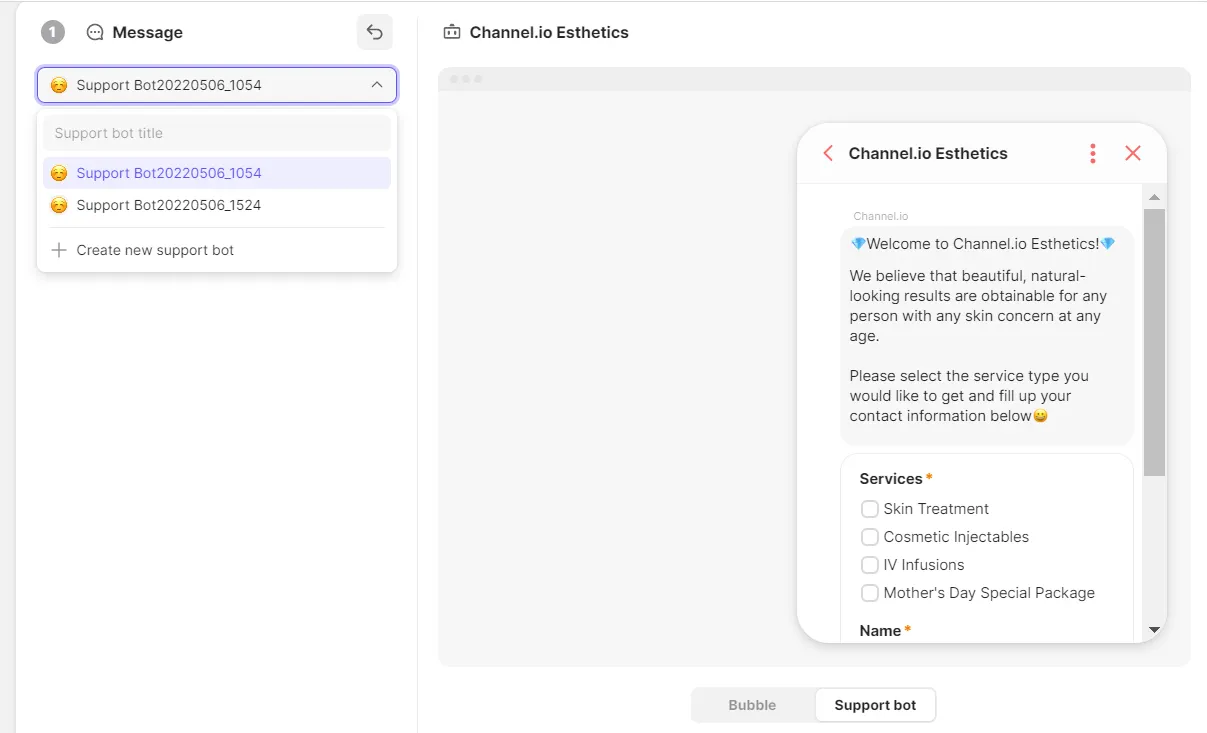 2) Click [Send a Support Bot] → Load the saved Support Bot.
