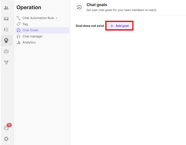 Go to [Operation] → [Chat Goals] → click [+Add goal]