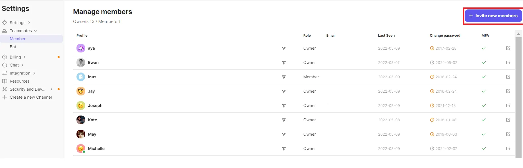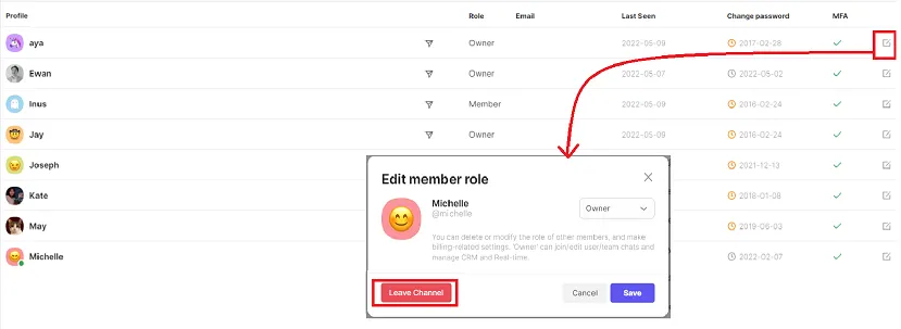Through the share link, you can directly invite members to your channel, and check the list of members at any time! on the list you can edit the permissions of each team member.