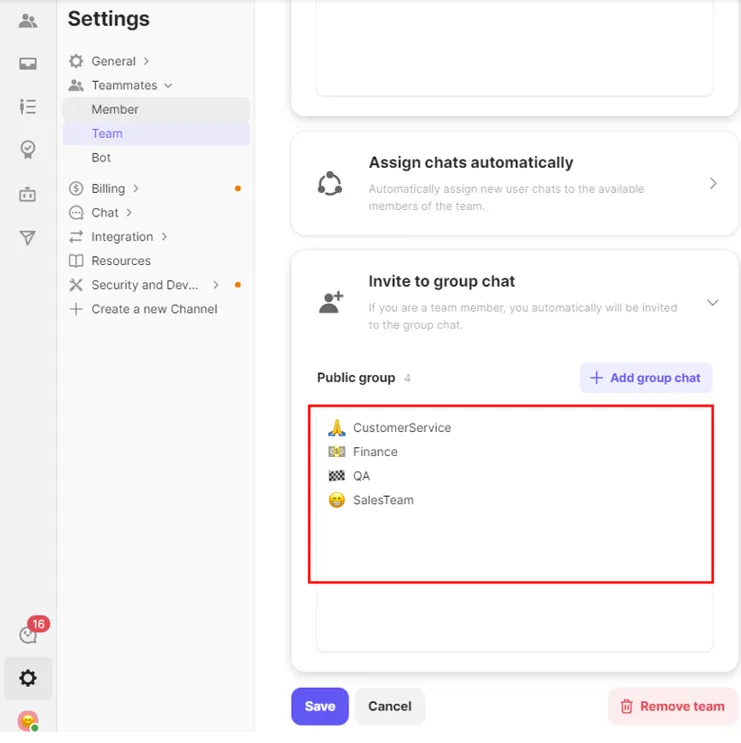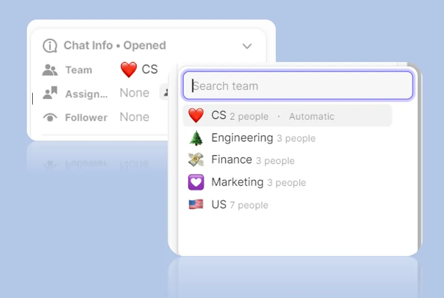 You can also automate team assignments through chat automation rules and support bots. ([→ Learn more about how to assign a team automatically]