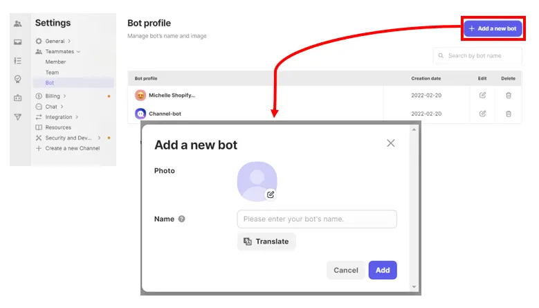 To create a new bot, click “add bot”.
