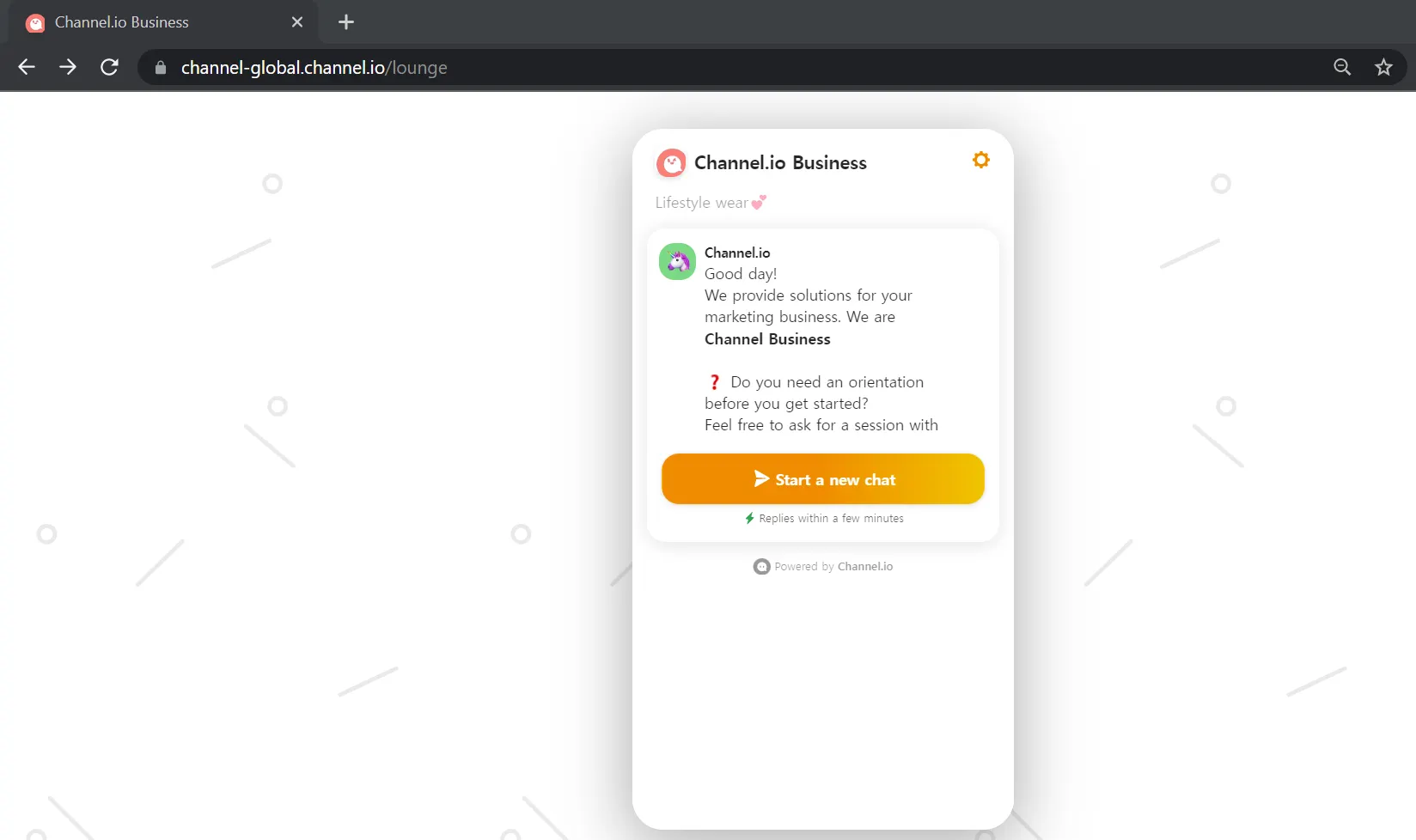 When you access your plugin link, you will be redirected to a window to make inquires directly to Channel.io. Customers can start chatting by clicking [Start a new chat].