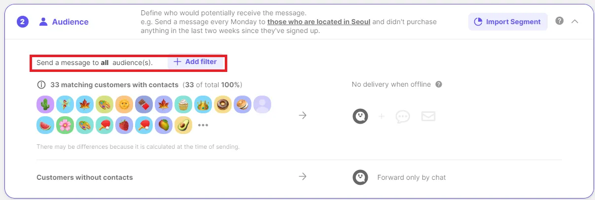 Set when and how to send a message to the target audience who met the above conditions.