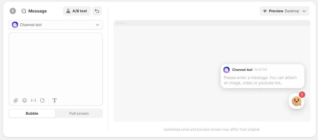 A space to compose a message to be sent as a campaign message. Send messages using images, videos, etc. as well as text.