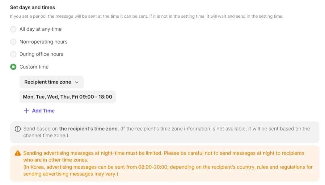For advertising messages, we recommend you send them during business hours.