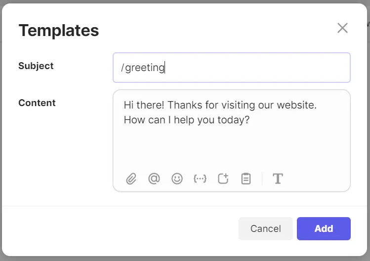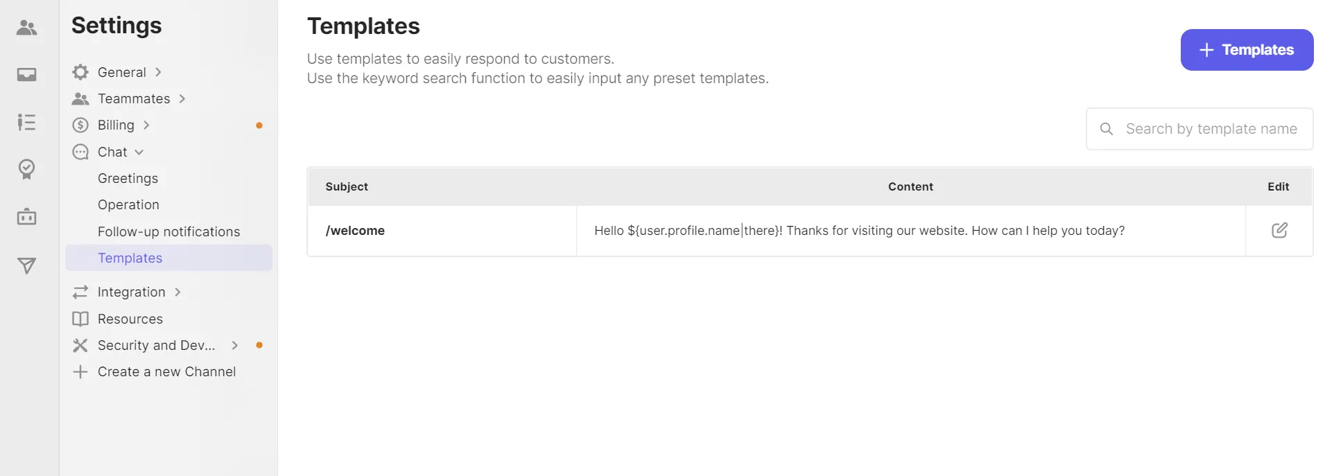 Settings location : [ Channel Settings] → [Chats] → [Response Templates]