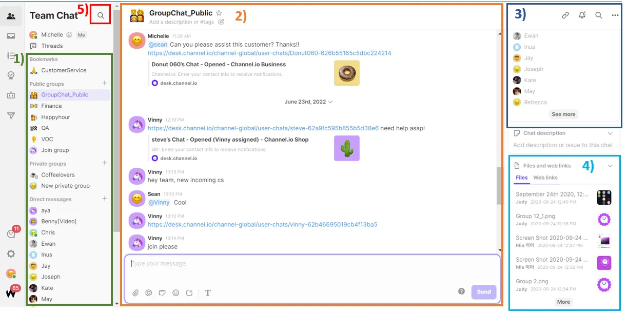 From Team chat to customer service Channel.io is your all-in-one manager. Experience the flow of your work and chat organization through personal messaging and conversation threads. Our teamchat solution is unlimited and free, no matter the number of members, files, or conversations you start , they are all free of charge. If you are aiming for a transparent and active communication culture, try using Channel.io’s Team Chat.