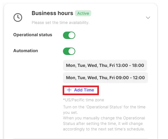 Even if automated business hours are set up, you can still manually enable or disable your business’s operating hours. The manual change will remain until the next scheduled start of operating hours.