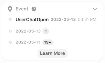 In ‘Events’ you can check customer activity on your homepage. You can see what pages they visited and what page they were viewing when they initiated the chat.